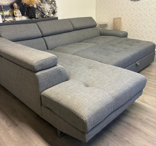 Grand Canapé Sectionnel Gris avec Rangement et Appuie-têtes Ajustables