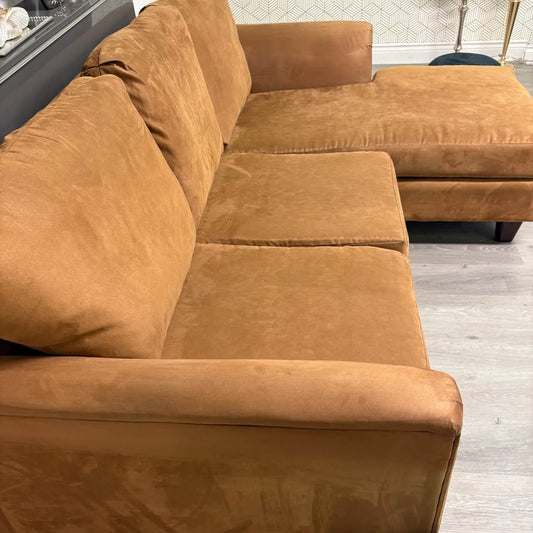 Canapé sectionnel 3 places avec méridienne réversible – couleur cognac / camel