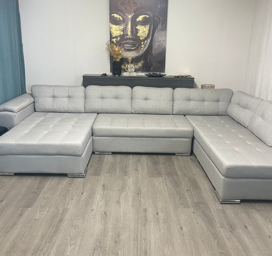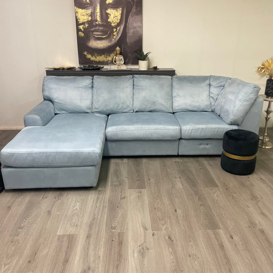 Grand canapé sectionnel droit en daim – Bleu ciel