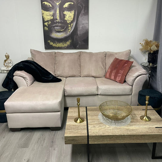 Pale Pink Velvet Sectional Sofa – Elegance and Comfort