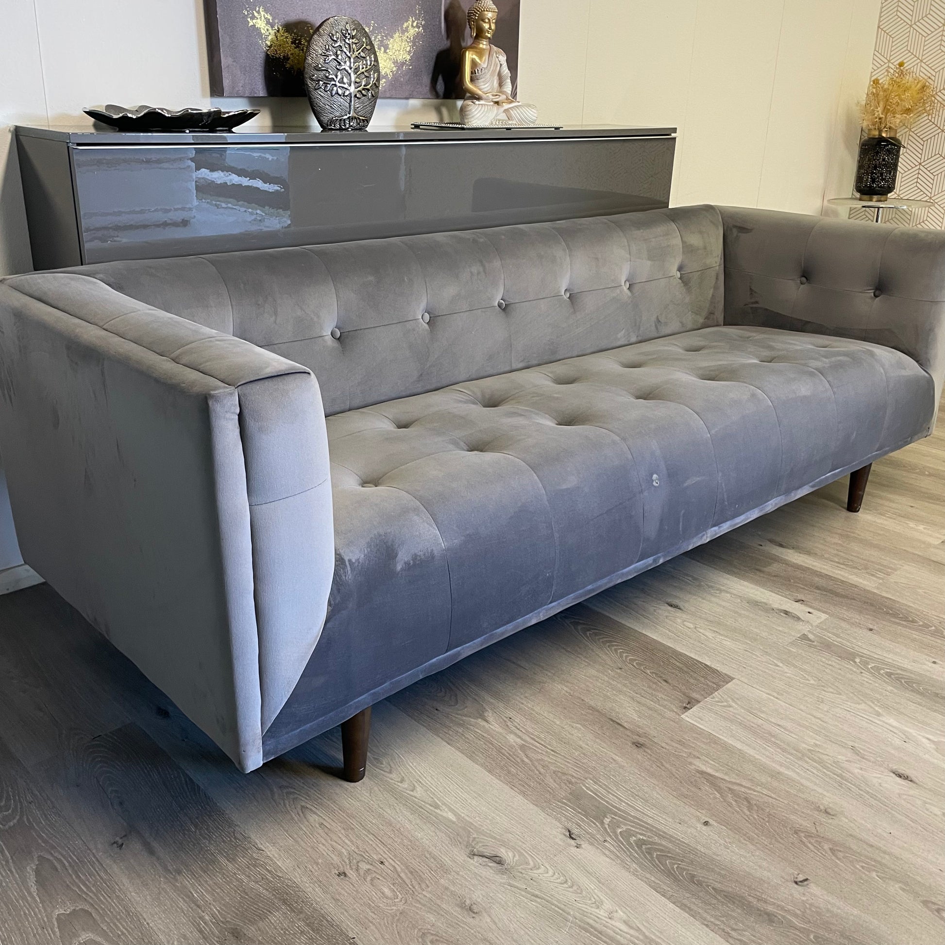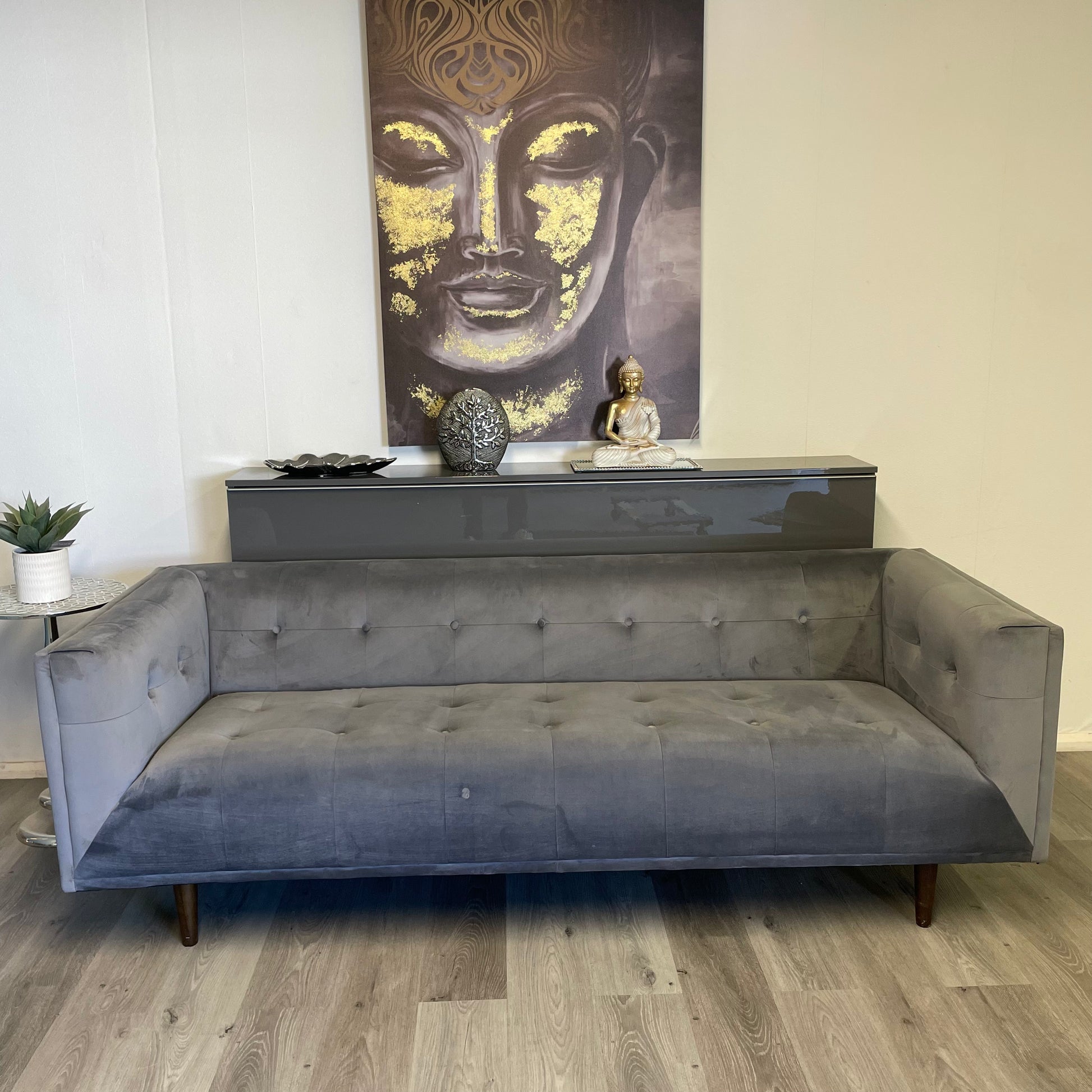 Canapé 3 places Loretta de Structube, en tissu gris élégant, alliant design moderne, confort et finitions sophistiquées. Avec ses accoudoirs hauts, ses détails capitonnés et ses pieds en bois, il s’intègre parfaitement dans un intérieur classique ou contemporain. En bon état général, il présente une petite tache tenace (visible sur les photos), mais a été soigneusement nettoyé et stérilisé en profondeur pour garantir une hygiène irréprochable.