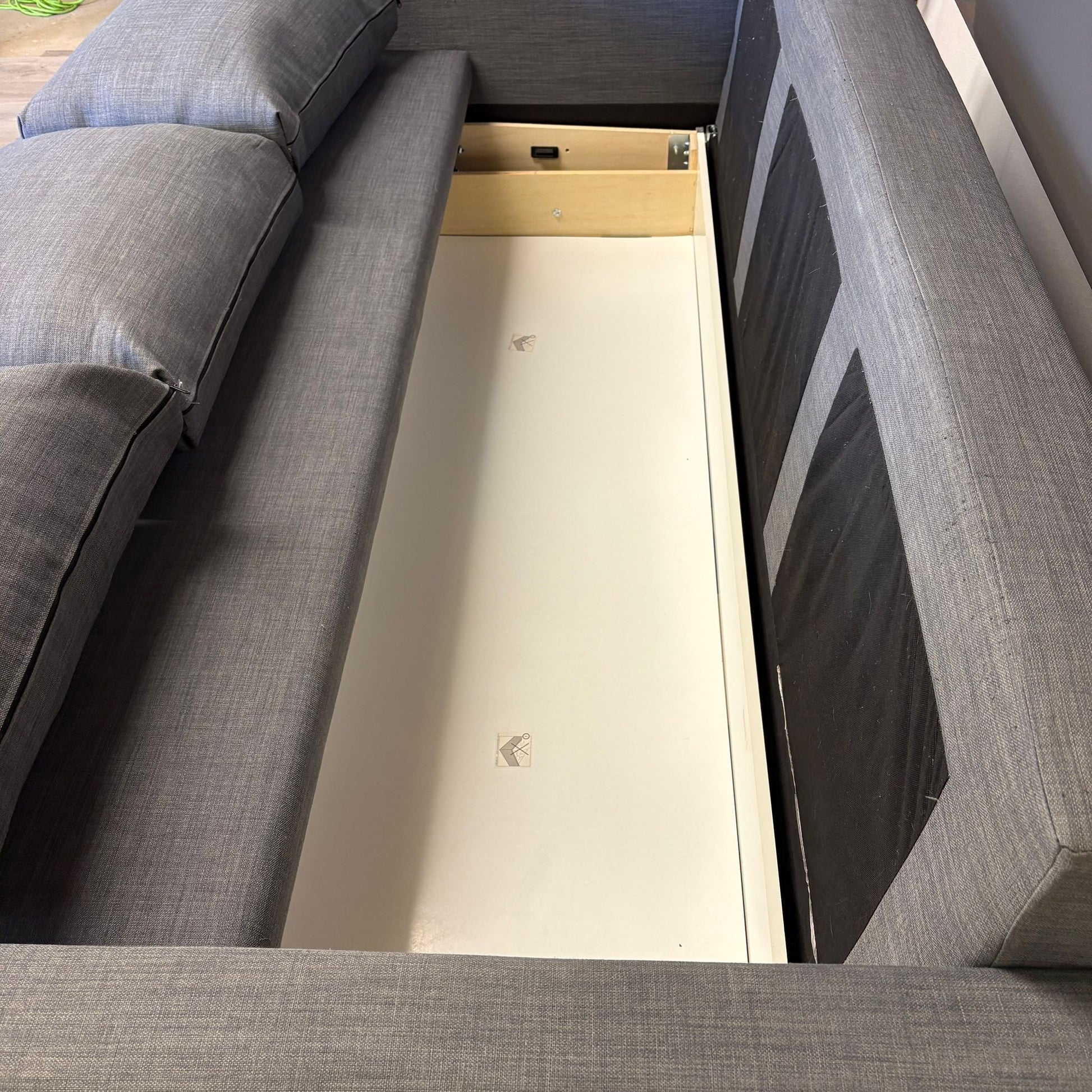 Le canapé-lit Ikea Friheten allie praticité et élégance, idéal pour les petits espaces. Son design épuré et son revêtement en tissu brun foncé offrent un confort optimal. Facile à transformer en lit, il est parfait pour accueillir des invités. Son espace de rangement intégré permet de stocker coussins et couvertures, offrant une solution astucieuse et esthétique pour votre intérieur.