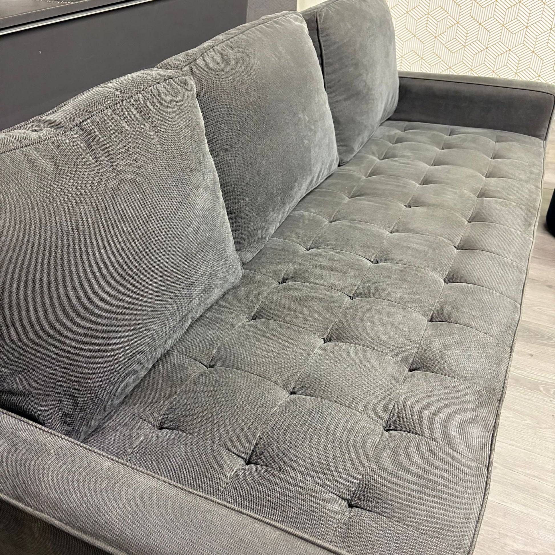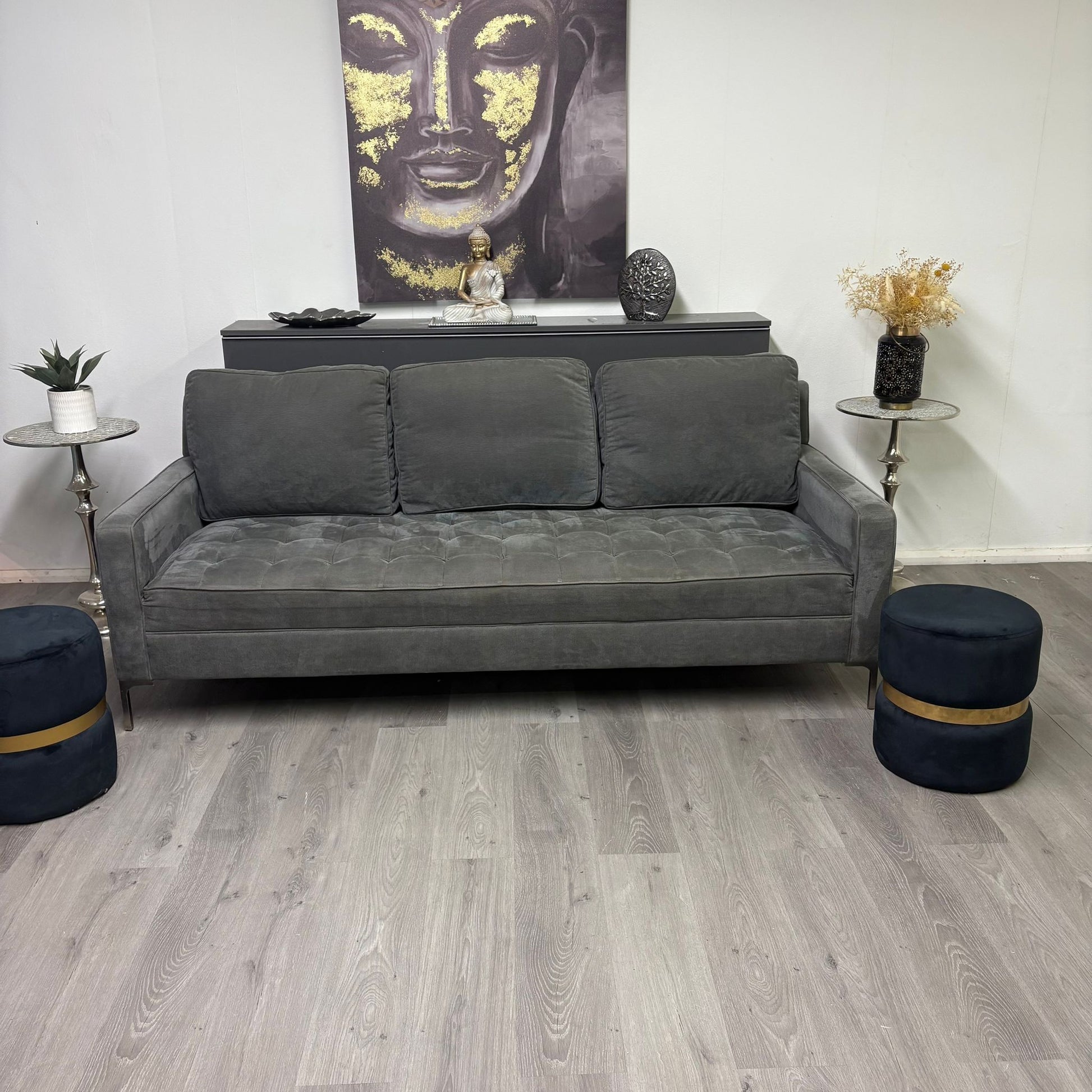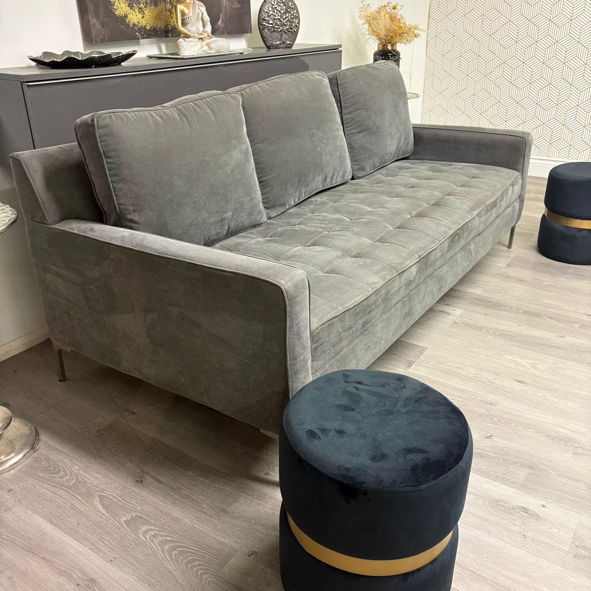 Élégant canapé 3 places en velours gris foncé, au design contemporain et au confort exceptionnel. Son revêtement en velours doux et ses coussins d’assise capitonnés offrent une assise moelleuse et agréable.