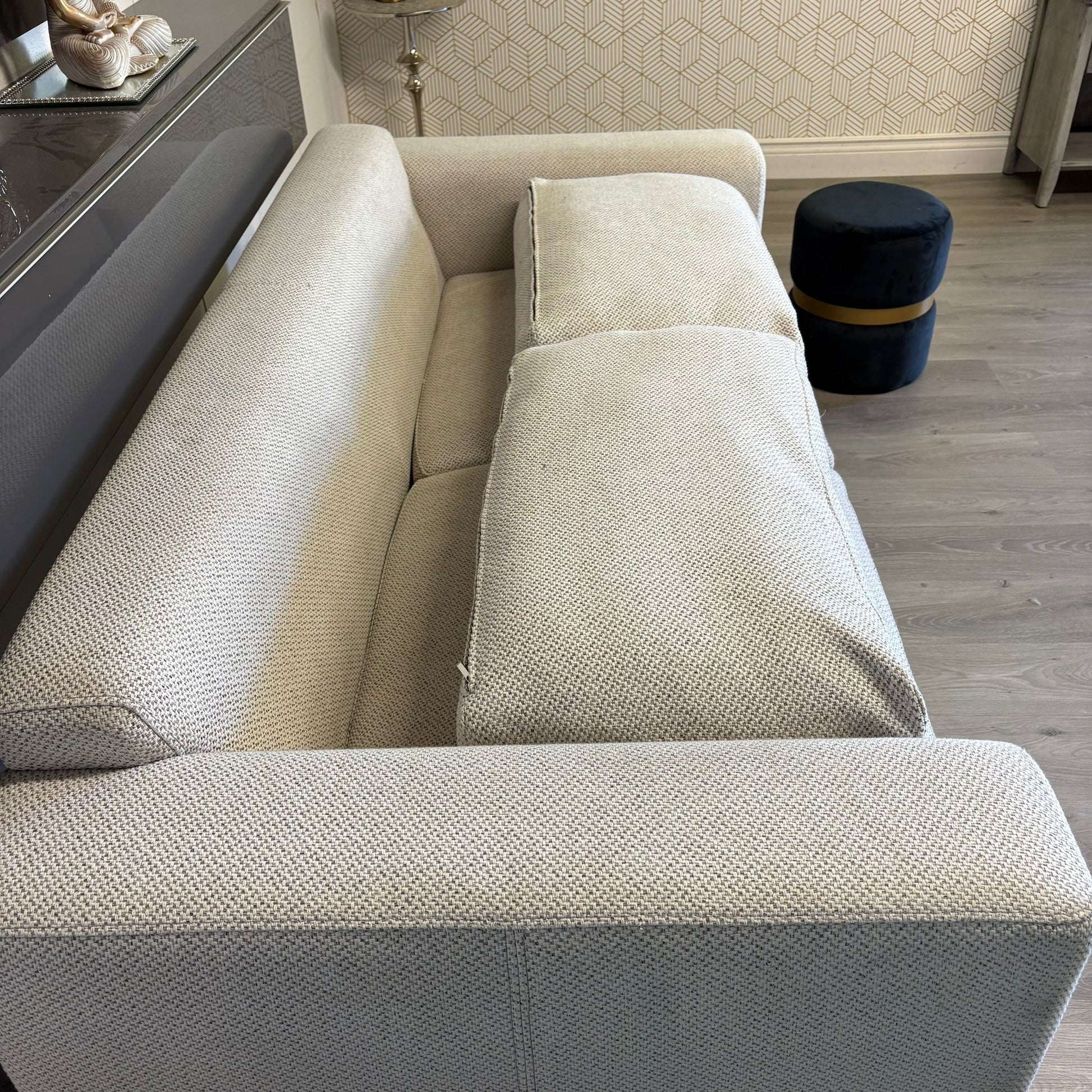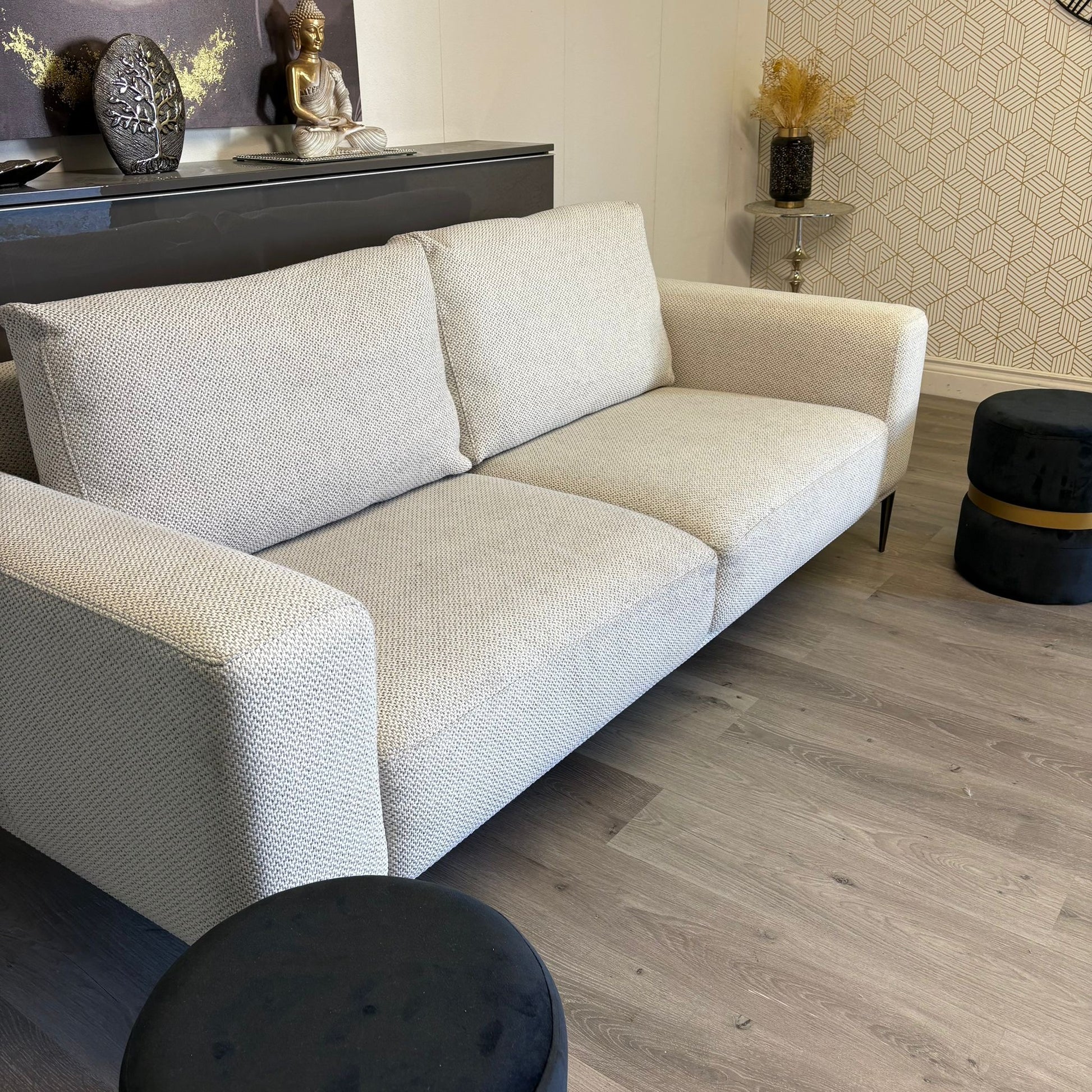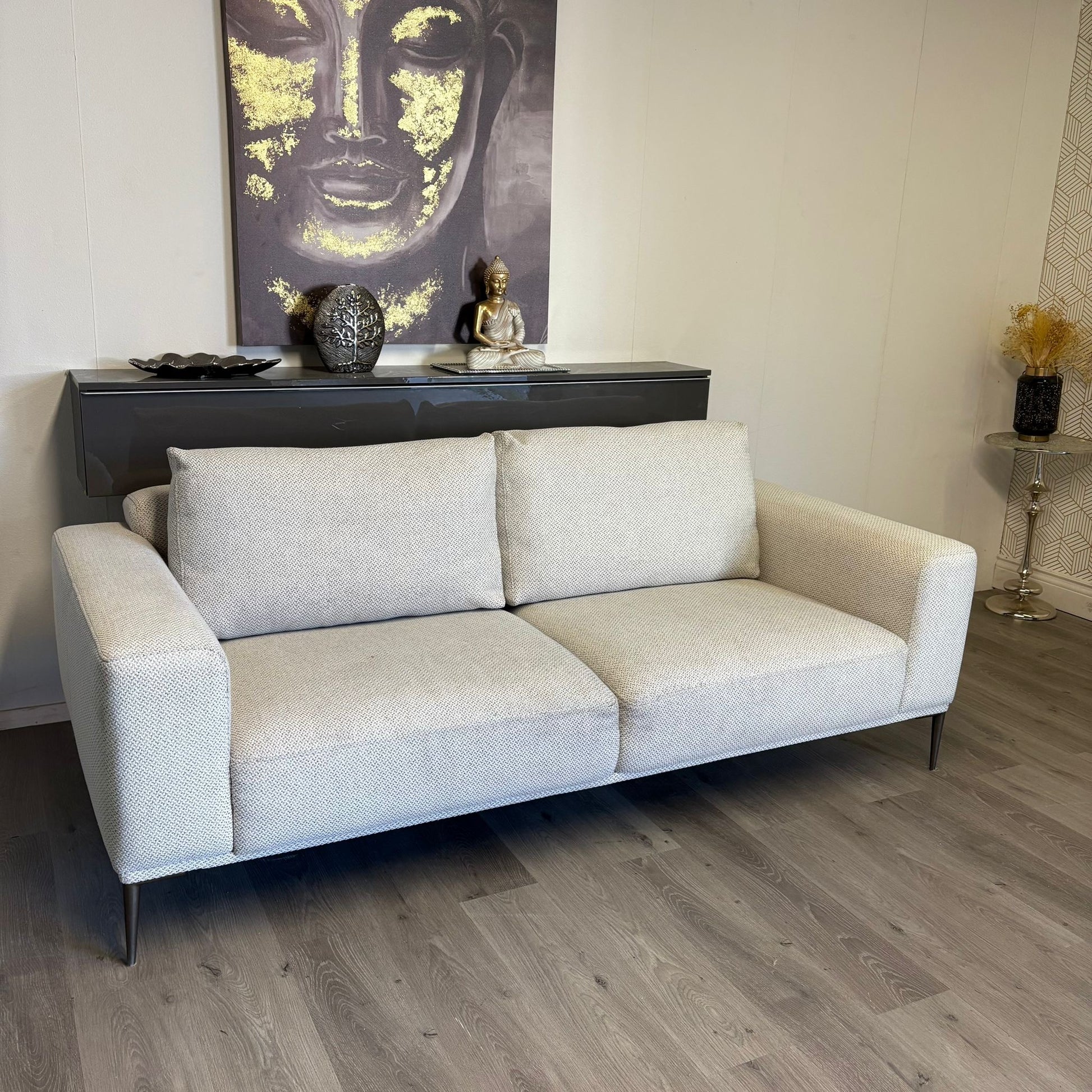 Canapé 3 places Lounis de en gris clair , un modèle qui combine parfaitement design contemporain et confort. Sa couleur gris permet de s’adapter aisément à tous les styles de décoration, tout en apportant une touche de modernité. Son assise moelleuse et profonde offre un excellent confort pour des moments de détente au quotidien. Canapé en excellent état, soigneusement nettoyé et stérilisé en profondeur.